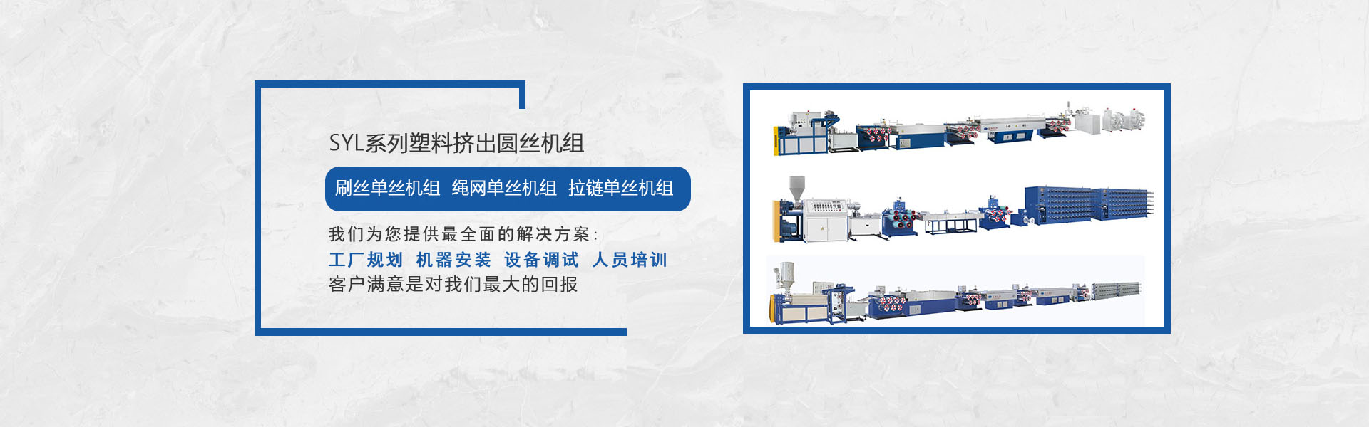 我司是專業(yè)生產(chǎn)塑料擠出圓絲、平膜扁絲機(jī)組等及其聚酯托幕線等配套附件、部件的專業(yè)化、正規(guī)化的企業(yè),公司集行業(yè)專家的豐富知識,多年積累的經(jīng)驗(yàn),結(jié)合國外同行先進(jìn)技術(shù),研發(fā)制造出系列圓絲擠出機(jī)組,在主要技術(shù)指標(biāo)和性能上已處領(lǐng)先水平,我們正不斷優(yōu)化管理,強(qiáng)化細(xì)節(jié),使之能更好地為廣大用戶提供從技術(shù)、制造到工藝的全方位服務(wù)。